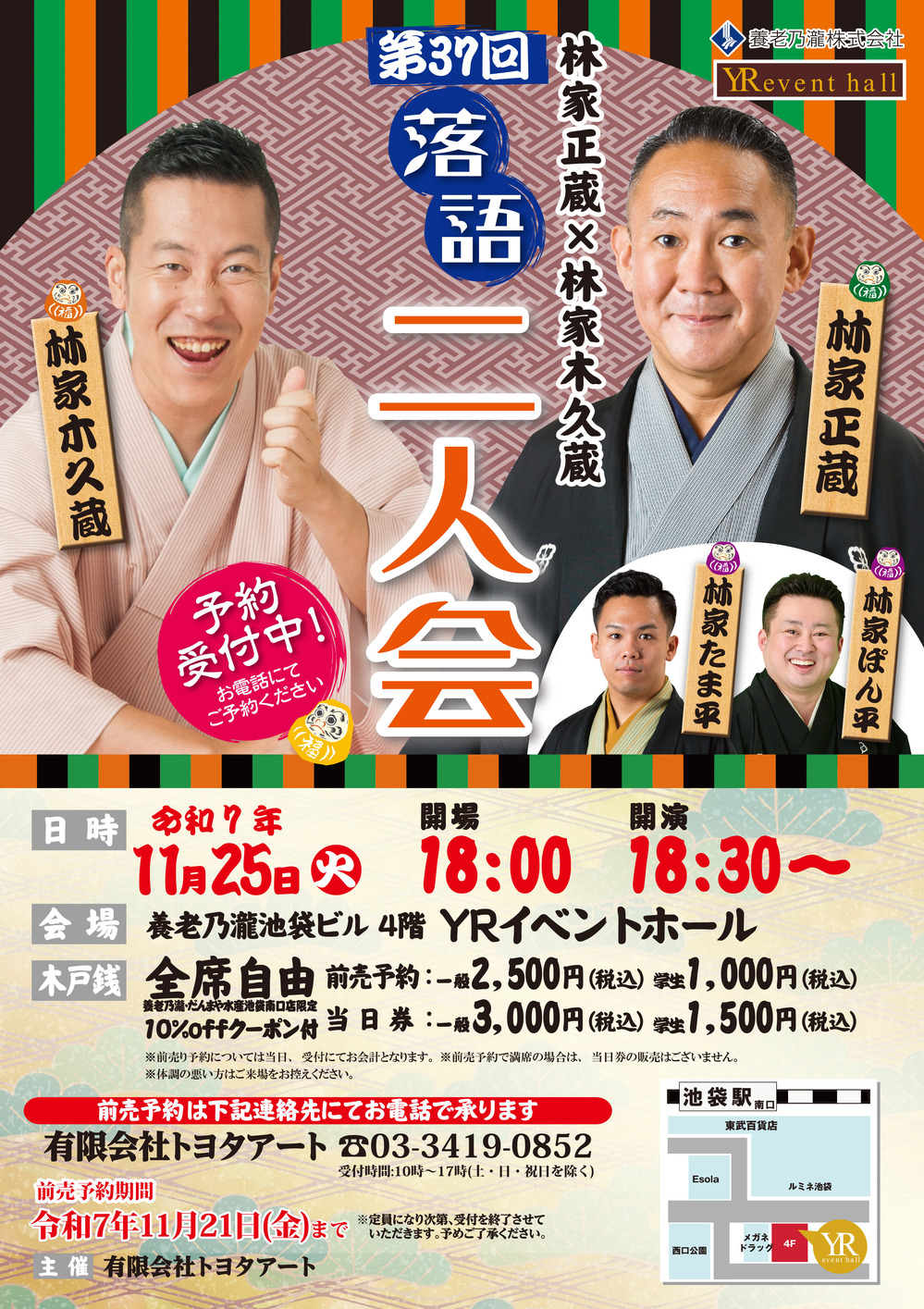 来る、11月25日(火)、第37回 落語二人会を開催いたします。