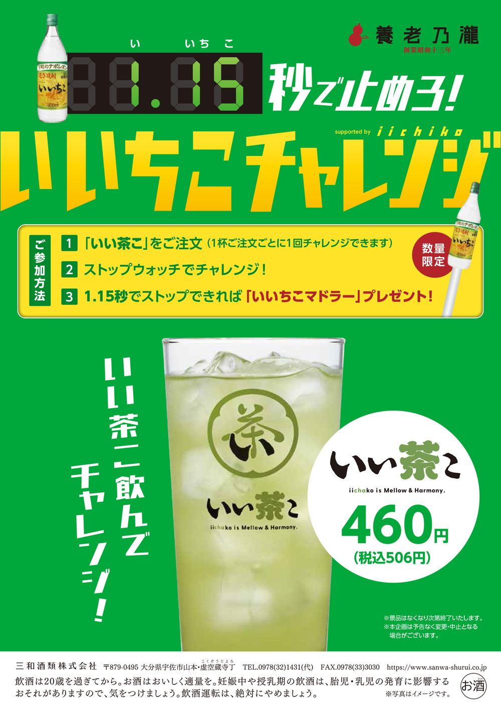『1.15(いいちこ)秒で止めろ!いいちこチャレンジ』養老乃瀧と一軒め酒場の対象店舗で開催決定!