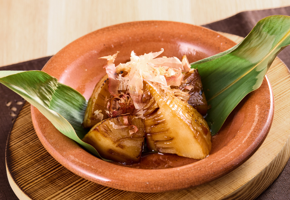 お出汁をたっぷり含んだ竹の子をステーキに!バターを加えた味わいが絶妙です。