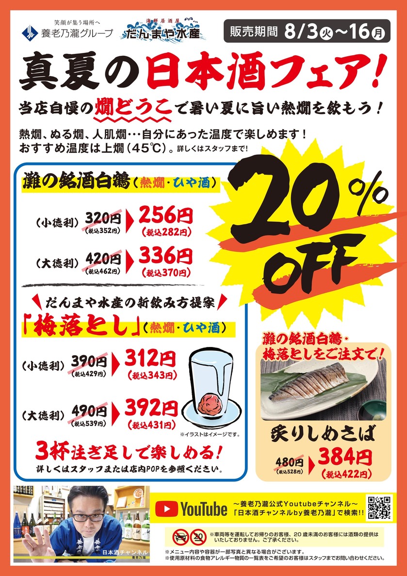 だんまや水産、一軒め酒場の対象店舗で日本酒フェアを開催中!